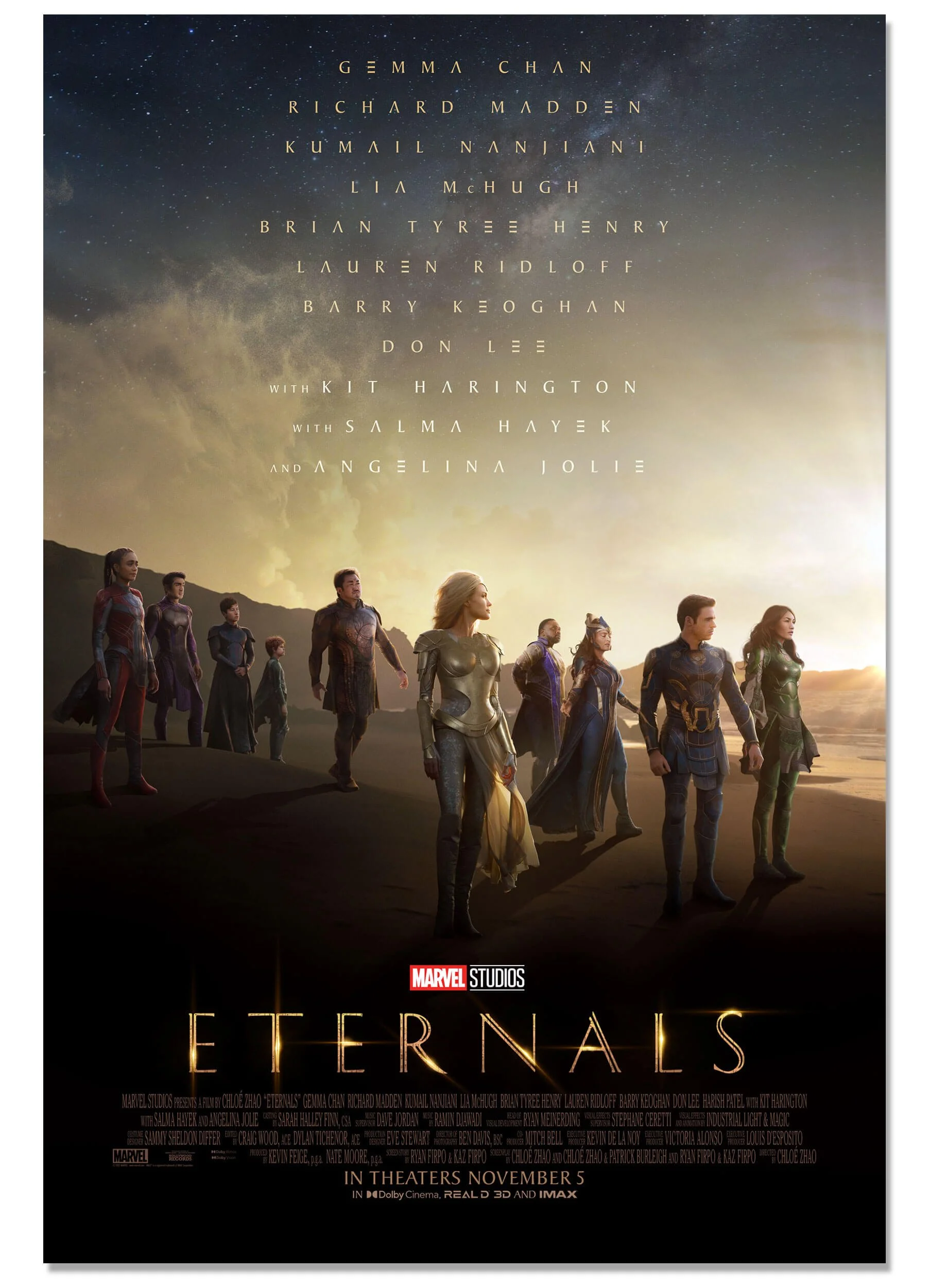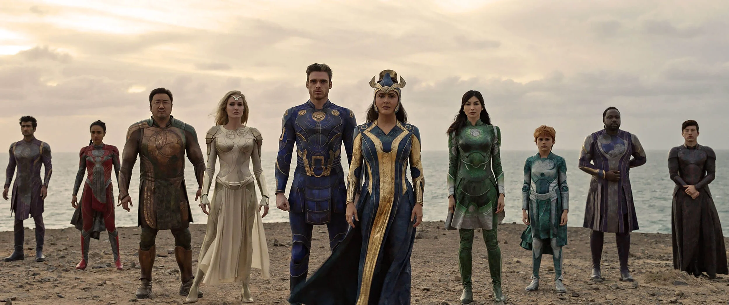 Marvel Studios’ Eternals (2021), directed by Chloé Zhao, follows a group of immortal beings tasked with protecting humanity, featuring a unified visual language built around a system of symbolic runes representing cosmic and elemental concepts.